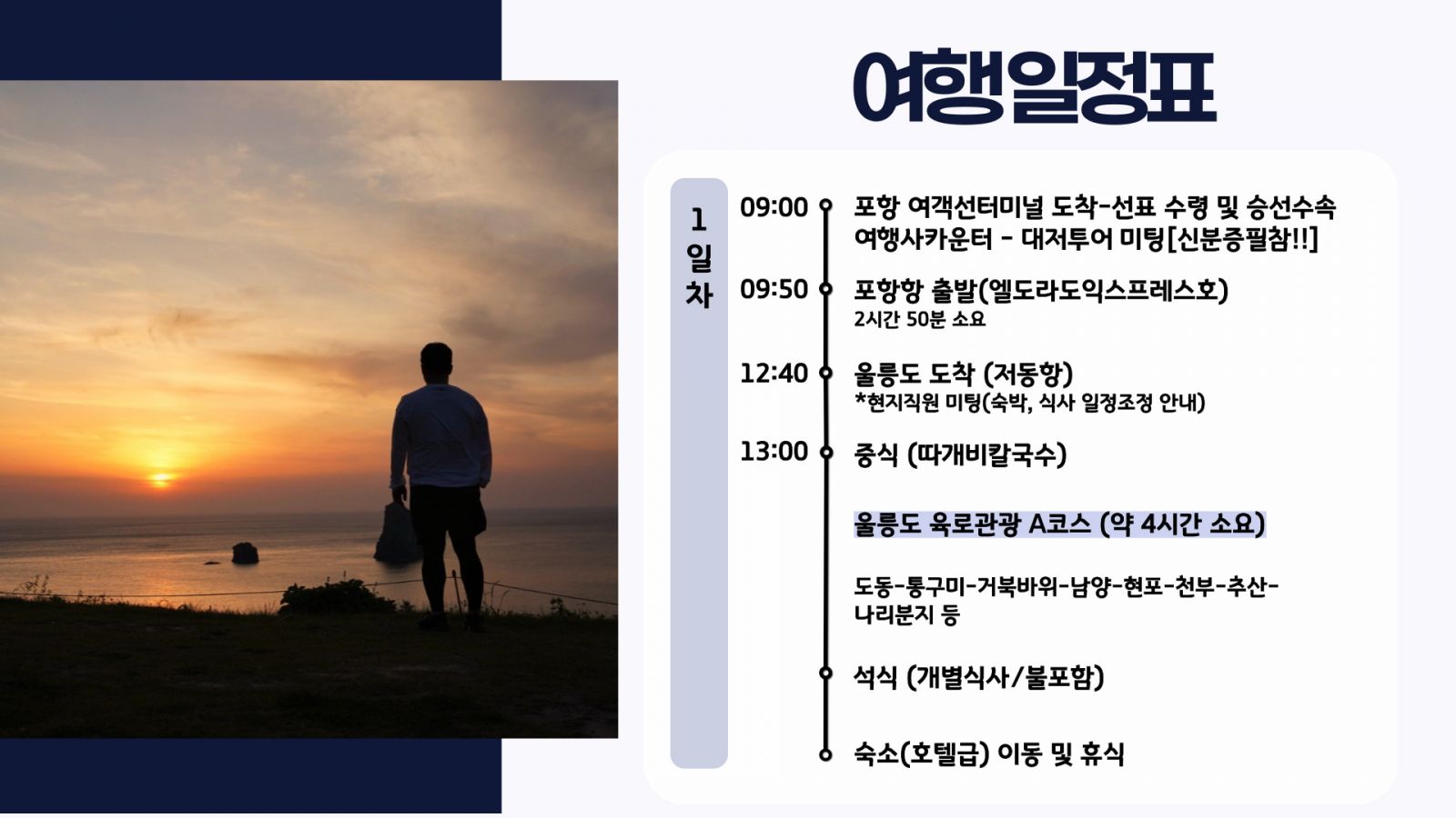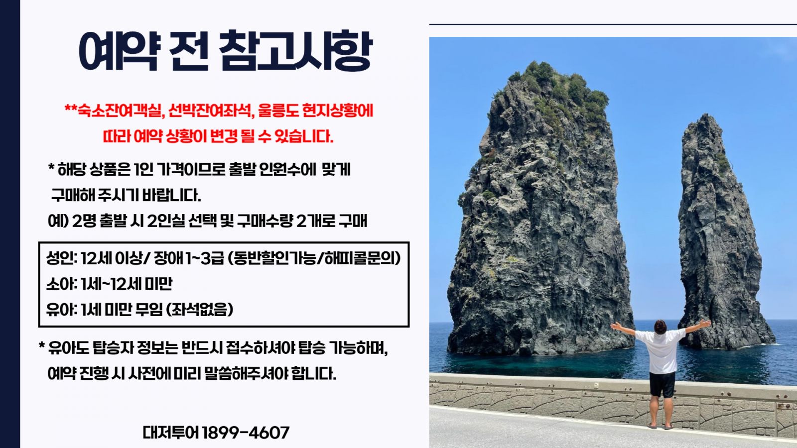 - 섬 지역 특성상 울릉도 숙소는 열악하므로 고객님의 협조와 양해 부탁드립니다.(개인 세면도구 필 참)