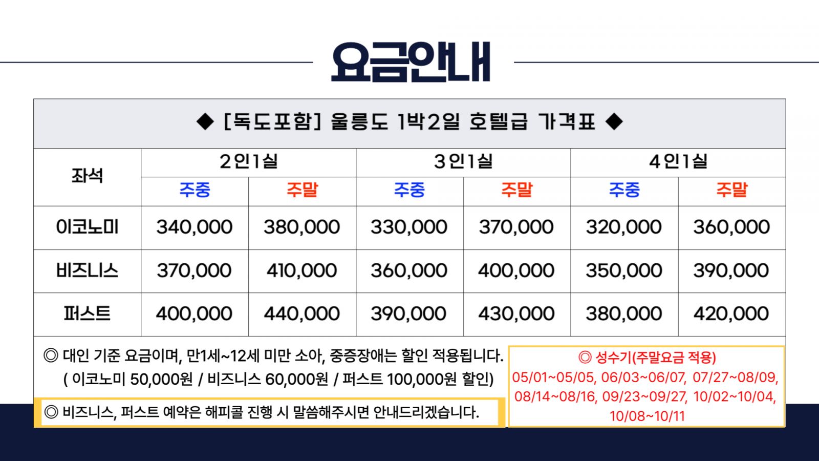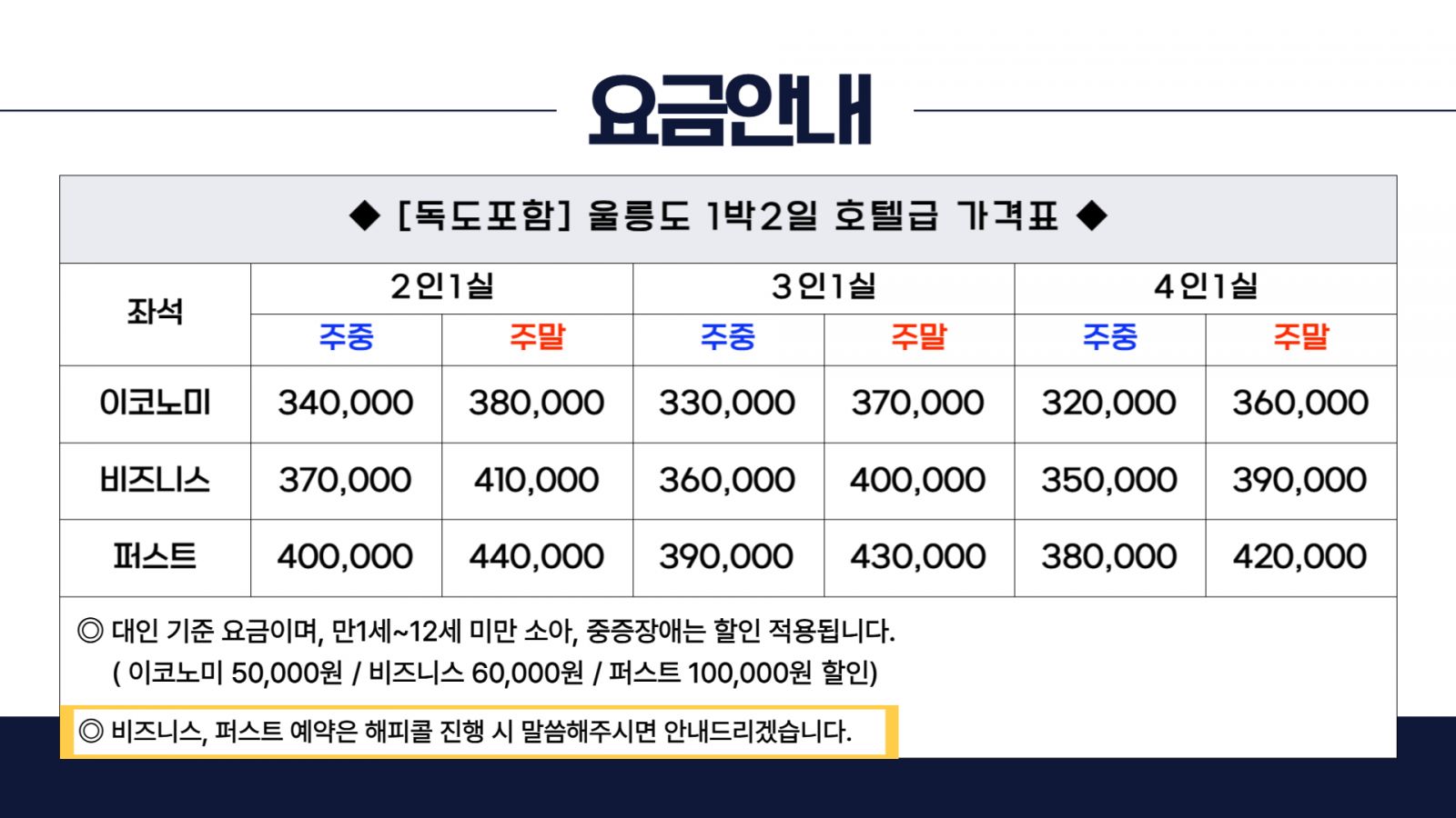 - 섬 지역 특성상 울릉도 숙소는 열악하므로 고객님의 협조와 양해 부탁드립니다.(개인 세면도구 필 참)