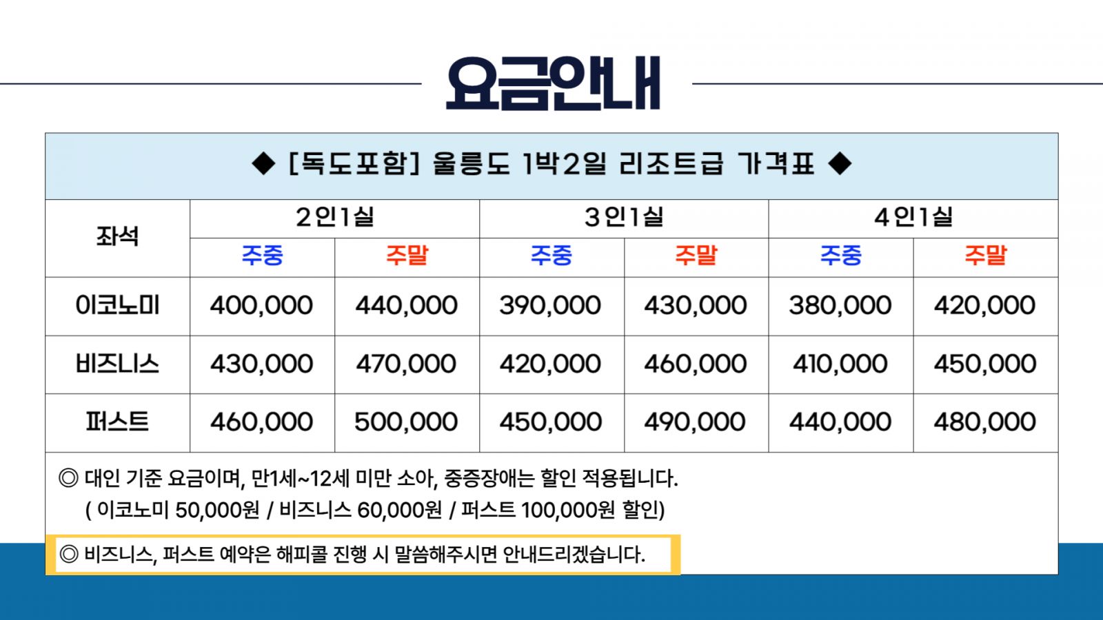 - 섬 지역 특성상 울릉도 숙소는 열악하므로 고객님의 협조와 양해 부탁드립니다.(개인 세면도구 필 참)