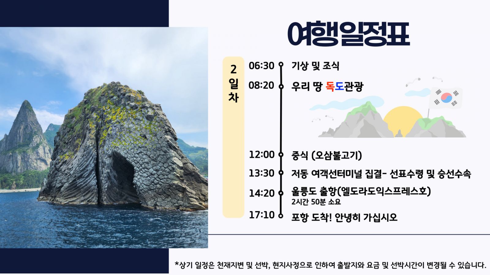 • 독도관광은 이용객의 인원에 따라 운항이 취소 될 수 있습니다.
