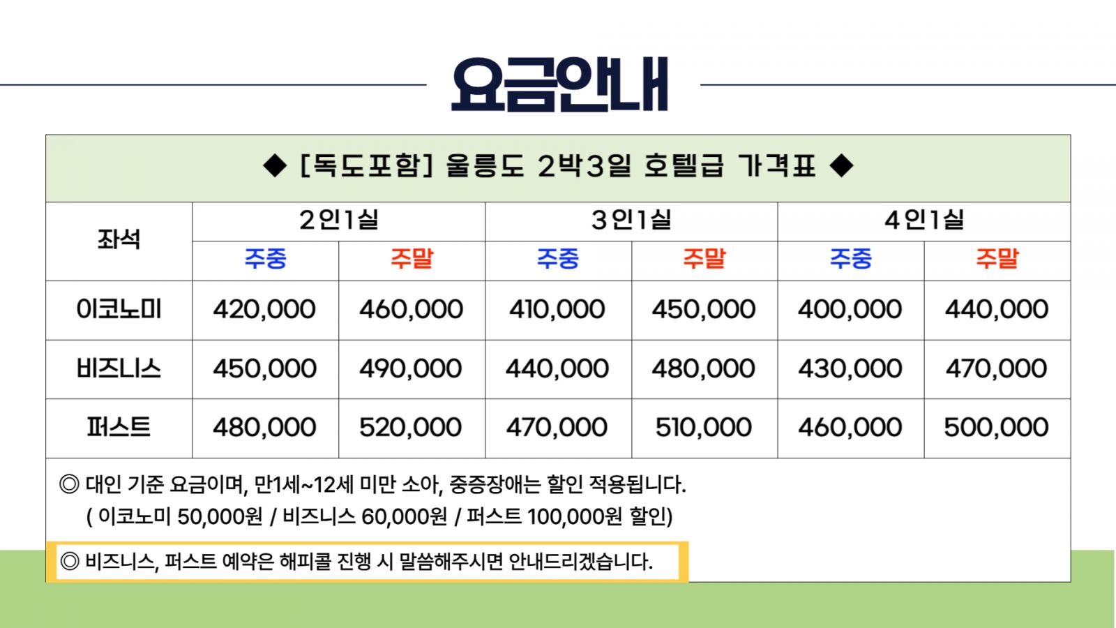 - 섬 지역 특성상 울릉도 숙소는 열악하므로 고객님의 협조와 양해 부탁드립니다.(개인 세면도구 필 참)