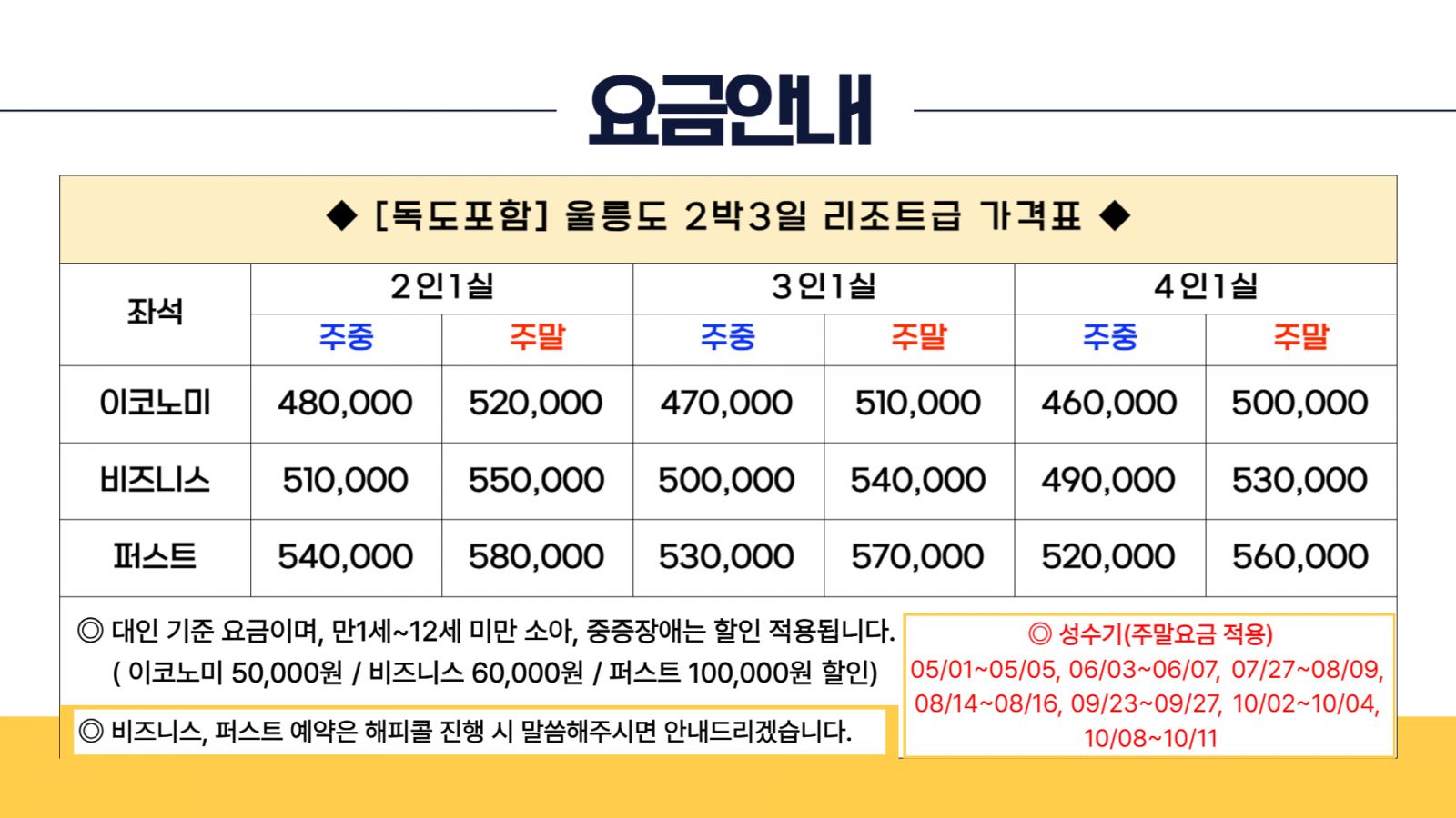 - 섬 지역 특성상 울릉도 숙소는 열악하므로 고객님의 협조와 양해 부탁드립니다.(개인 세면도구 필 참)