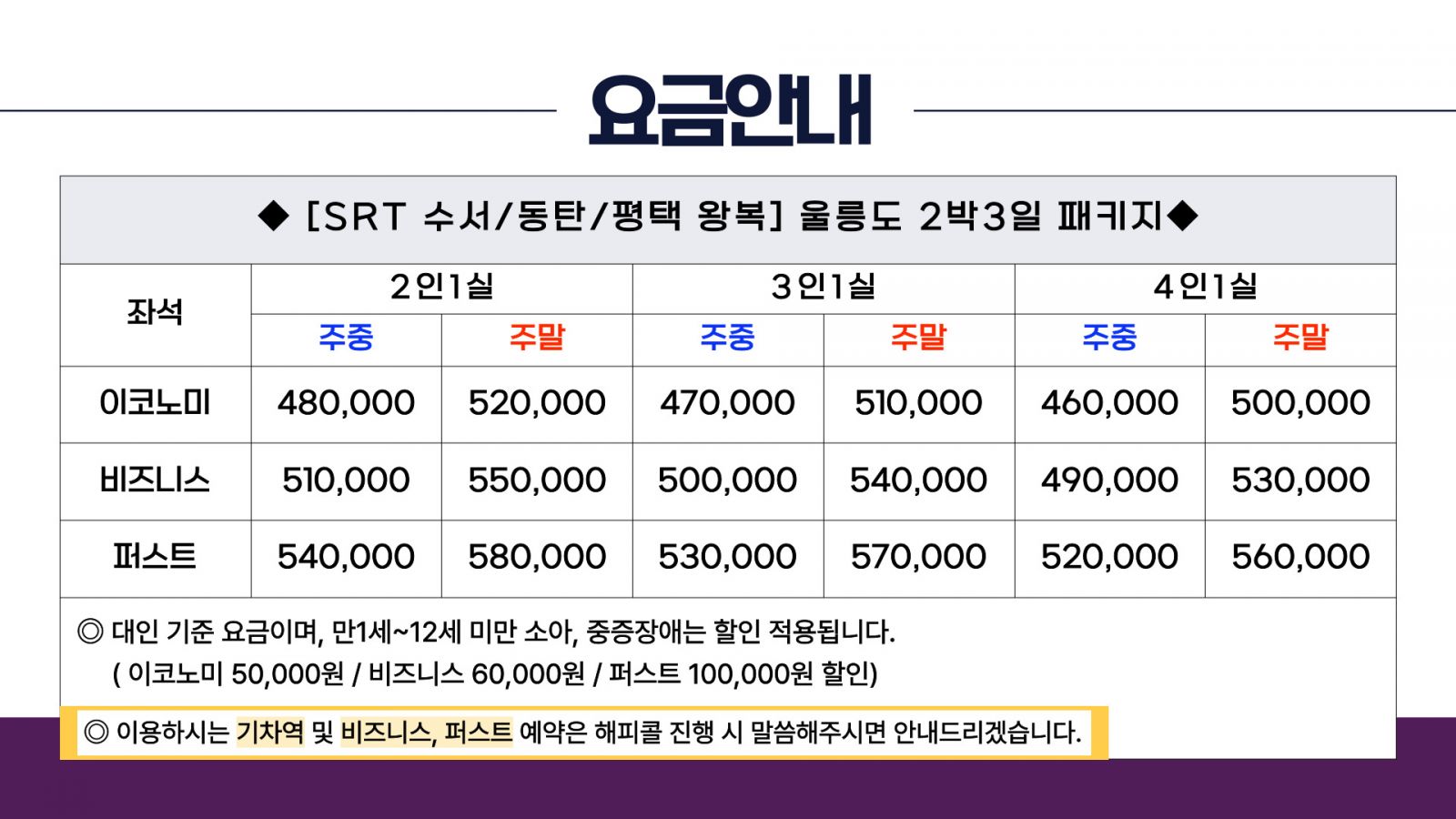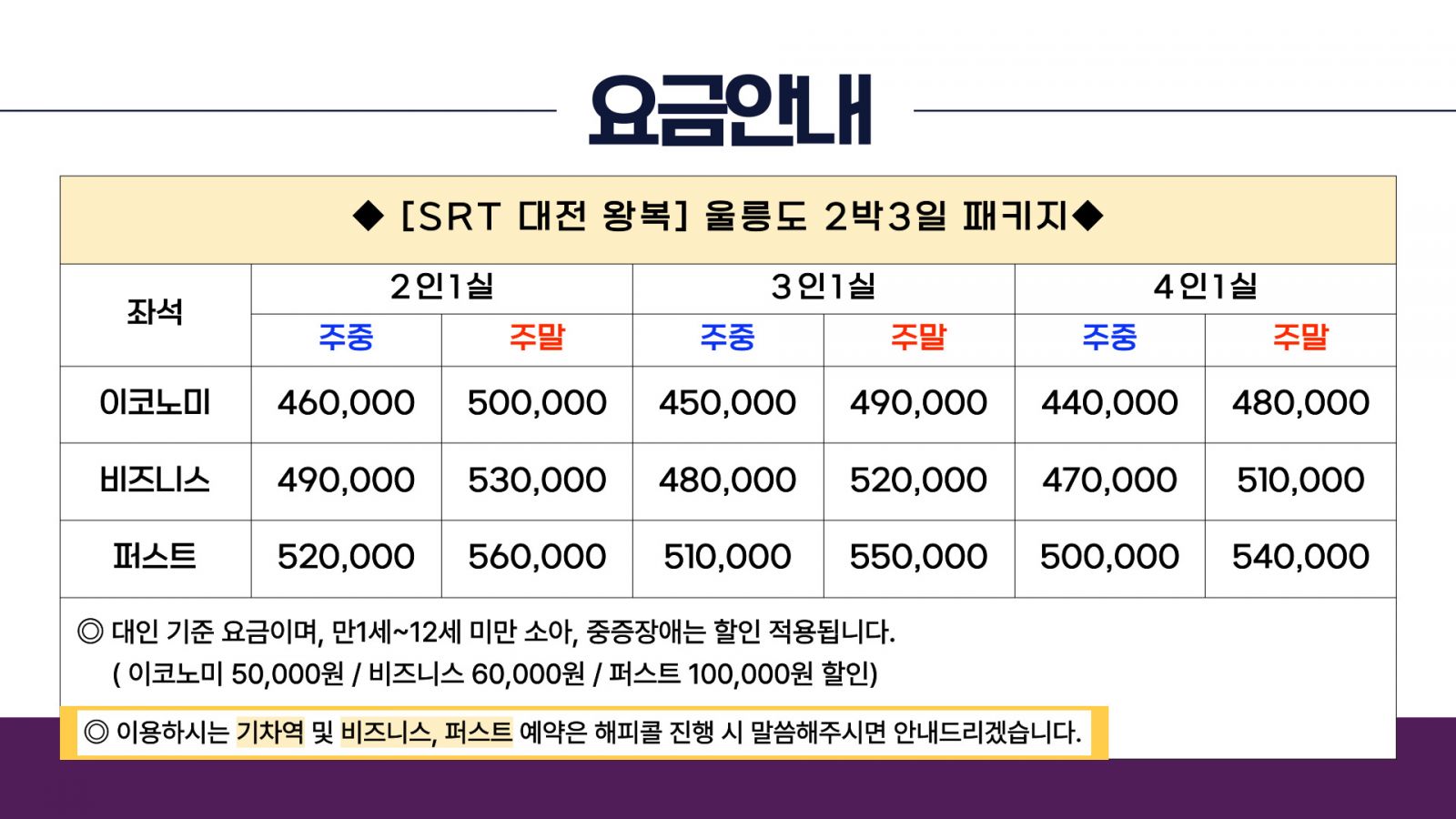 - 해당 상품은 2인이상 예약 가능하며, 선표 왕복으로 이용하는 2박3일 패키지 상품입니다.