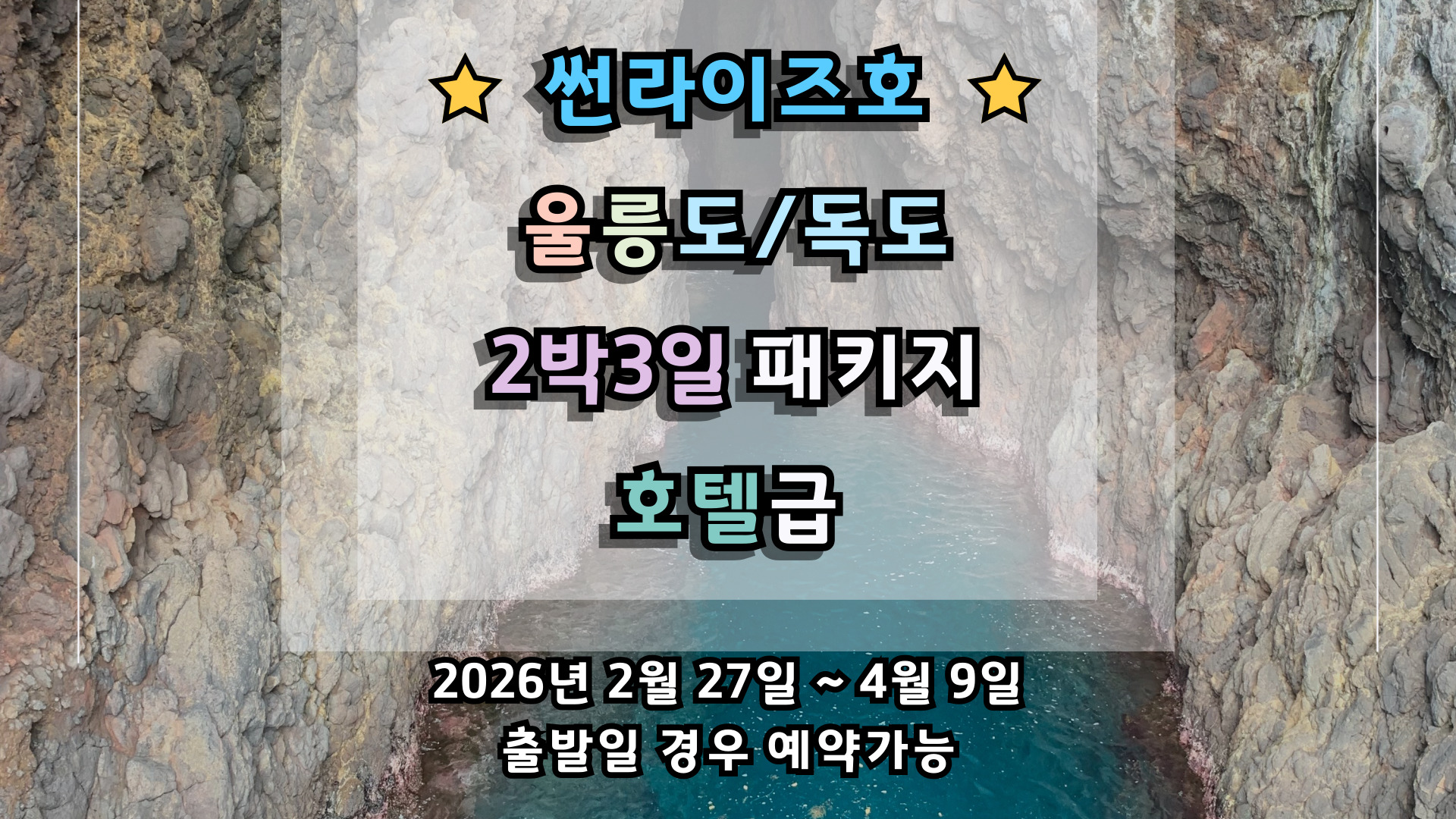 - 섬 지역 특성상 울릉도 숙소는 열악하므로 고객님의 협조와 양해 부탁드립니다.(개인 세면도구 필 참)