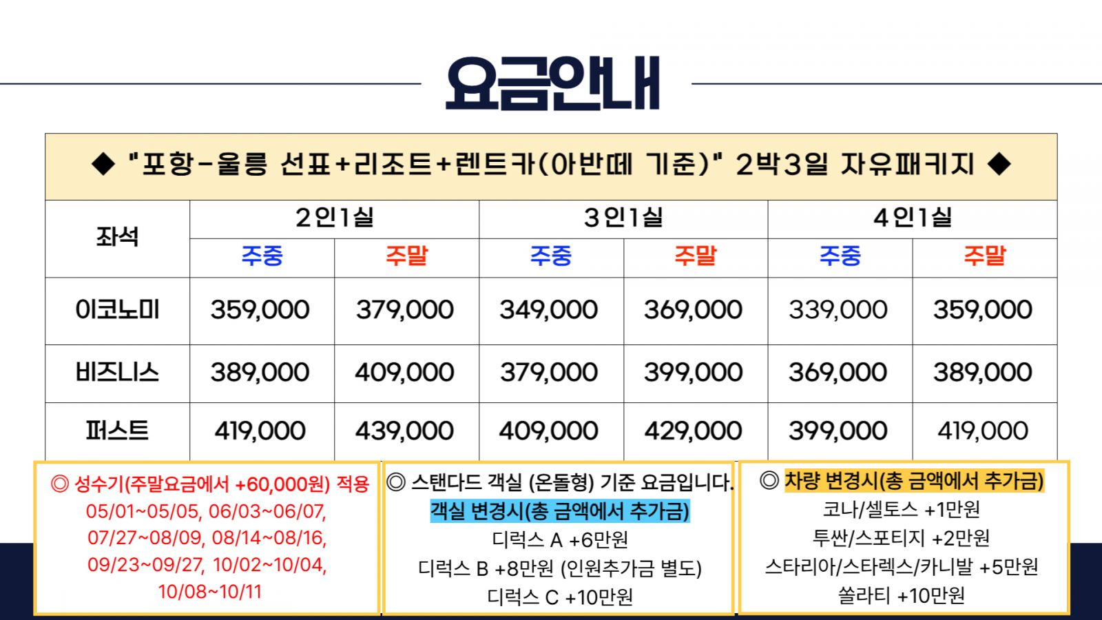 *리조트 잔여 객실, 선박 잔여좌석, 울릉도 현지 상황에 따라 예약상황이 변경될 수 있습니다.*