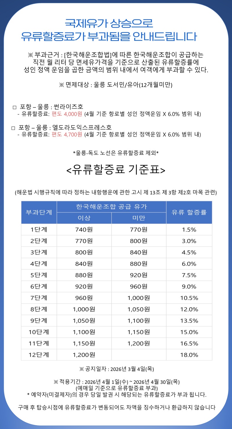 2026년 4월 유류할증료 부과안내